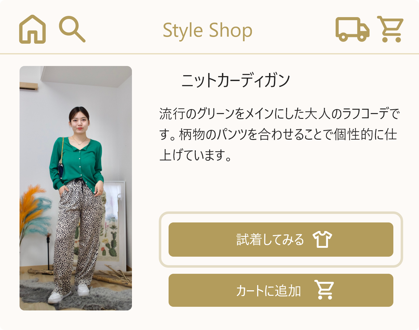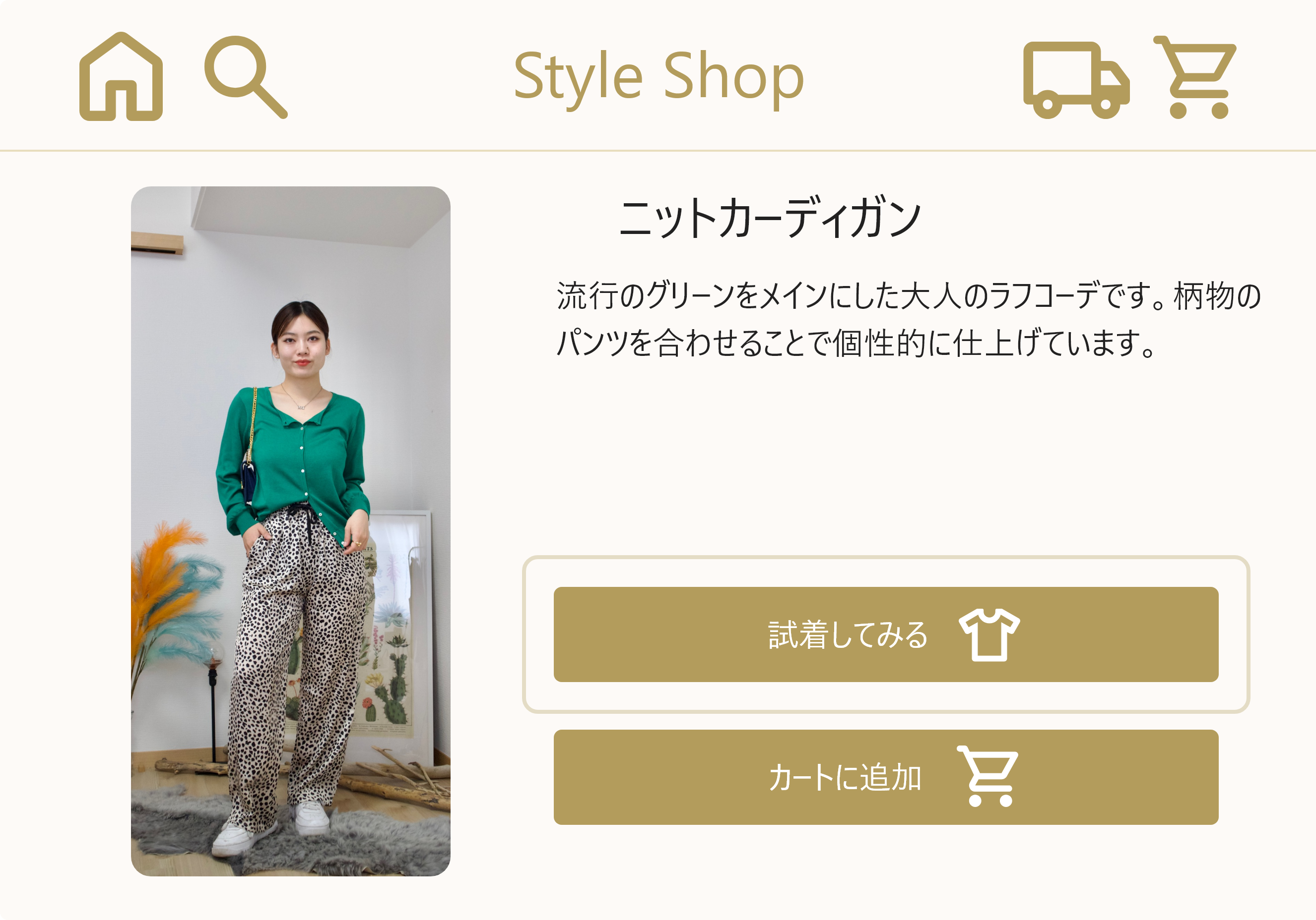 フェイスワップによる試着体験のため、自分の顔や雰囲気に気になった服が本当に似合うのかを確かめやすい。 |