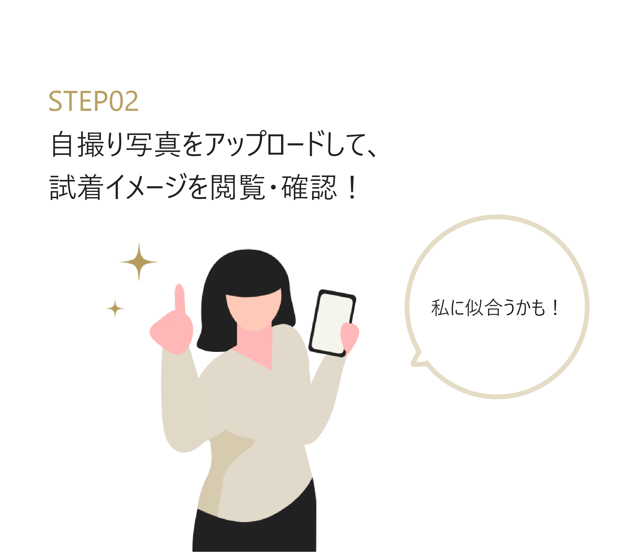 実店舗での試着前に、体型※に合ったリアルな試着イメージを確認できる。